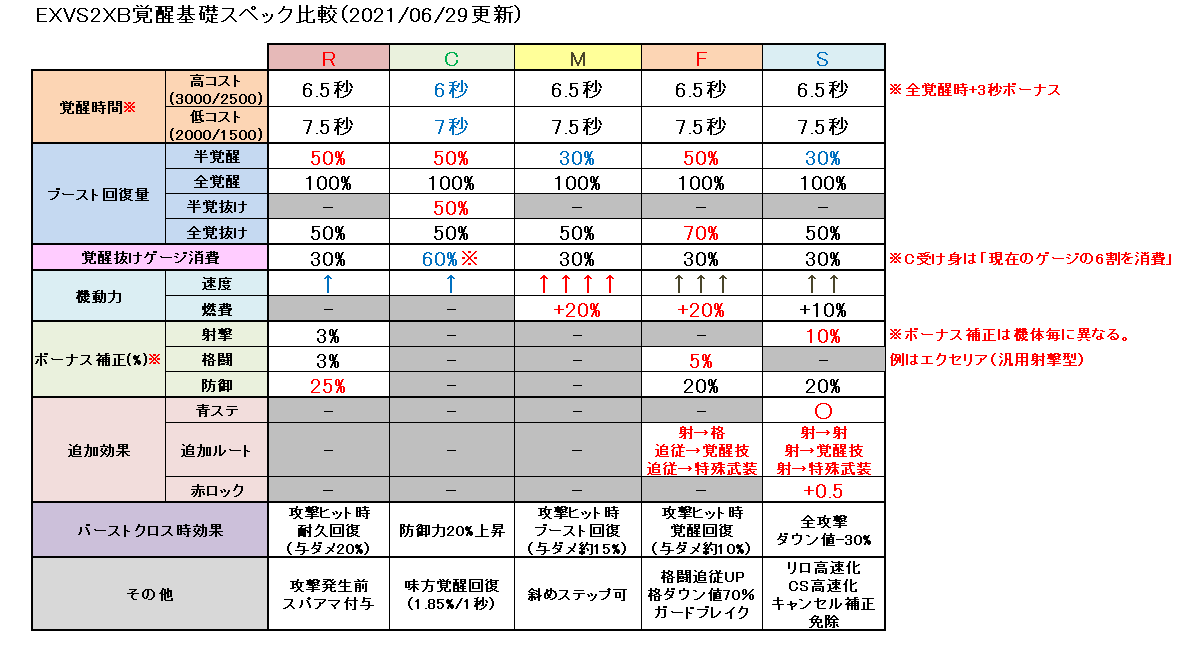 覚醒ゲージ増加率関連、機体グループ別性能については別の機会に。